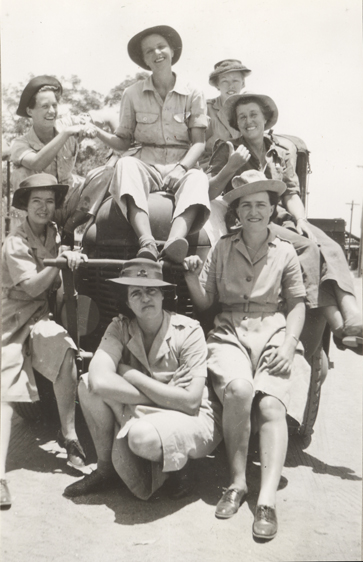 "Phil"; "Brainey" - Deirdre Webster Braine, WF15722 (17 June 1924 - 26 August 1988); "Youngie" - Ruth Young, probably Ruth Victoria Young nee Sweetman (later Burrows) WF90980 (24 May 1918 - 6 May 1990); "Westie" - Alice Minna Westphal, WF15702 (29 January 1916 - 27 August 2014); "Syb" - Sybil May Haggerty, WF15730; "Glen"; "Smithie"- probably Erica Ruth Smith, WF15726 or Ruby Rebecca Smith WF94516