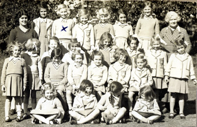 Back Row: Miss Palmer, Pamela Cliff, Deirdre Braine, Delphine Parker, Pat Delvies (= Patricia E Davies?), Laura Acton, Joy Edmonson (= Betty Joy Edmondson?), Mrs Nicolls